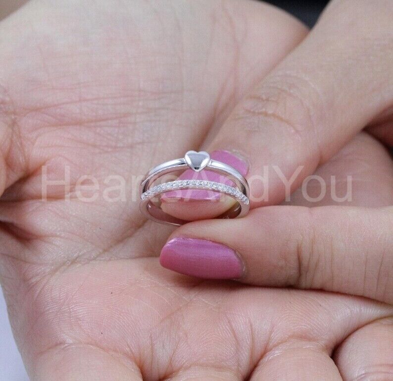 1ct Round Cut Moissanite Heart Double Women Wedding Band 14k White Gold Plated