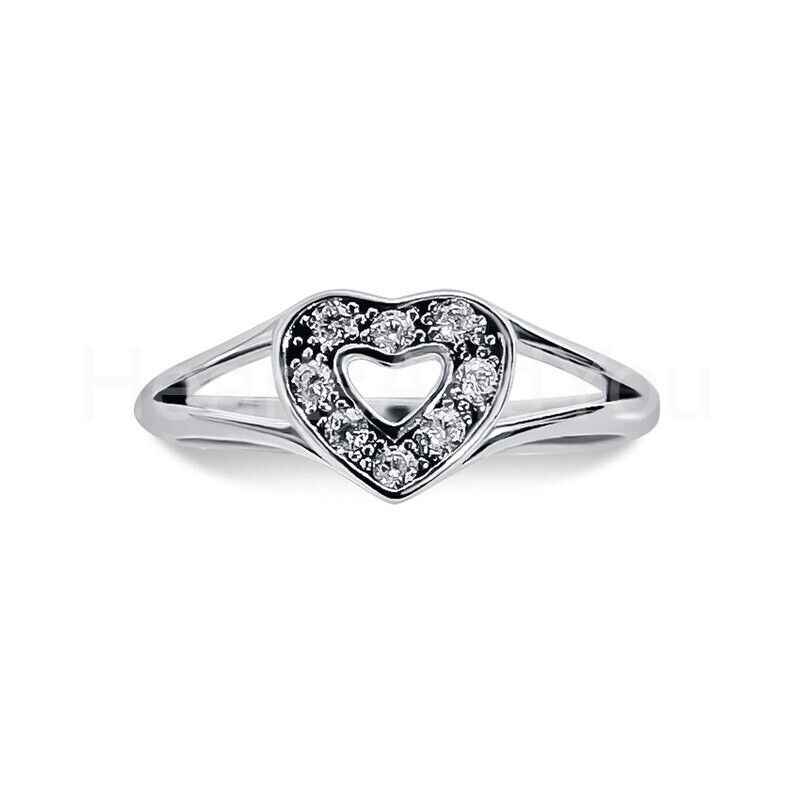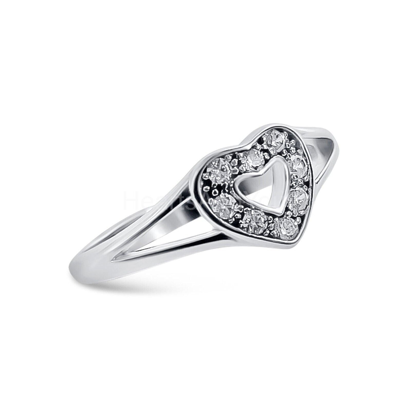 1ct Round Cut Moissanite Heart Shape Split Shank Women Ring 14K White Gold Plated