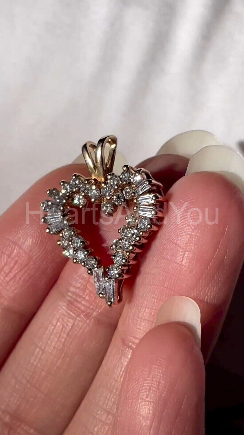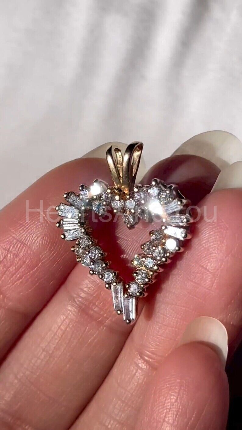 1ct Round Cut Moissanite Open Heart Valentine Pendant 14k Yellow Gold Plated NO CHAIN