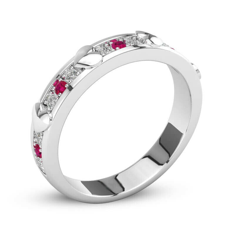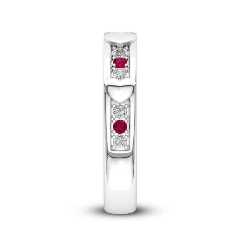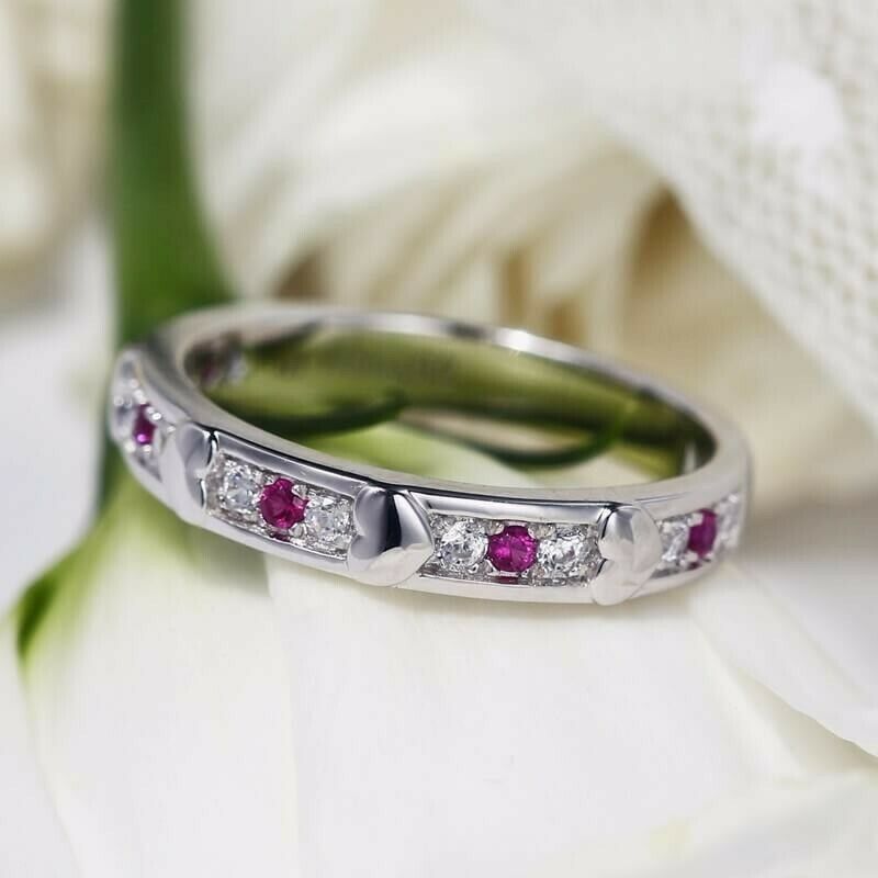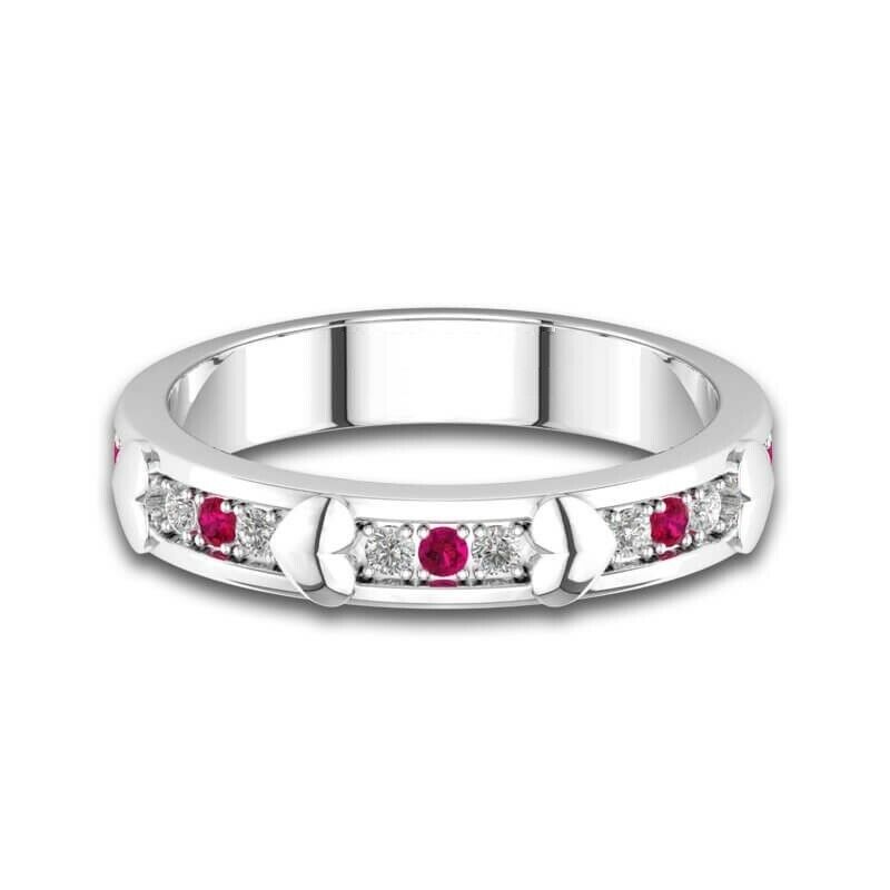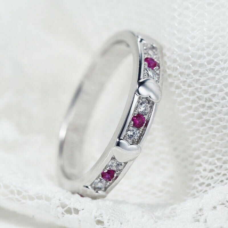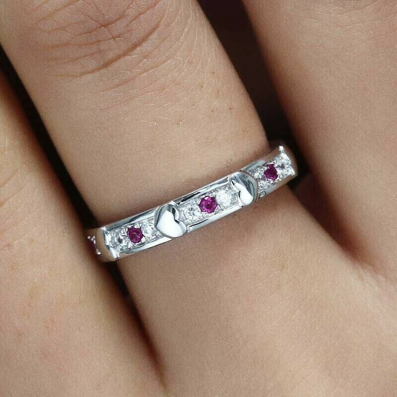 1Ct Round Cut Pink Ruby Diamond Heart Design Wedding Band 14K White Gold Finish