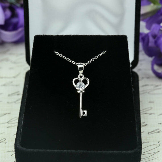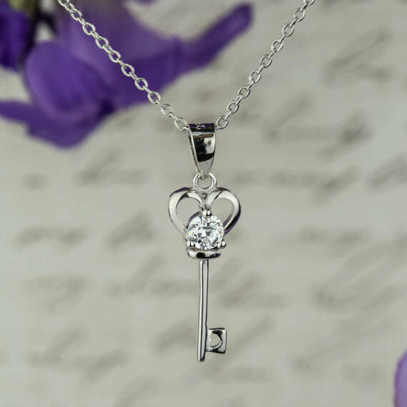 1ct Round Cut VVS1 D Diamond Heart Key Pendant 14k White Gold Finish NO CHAIN