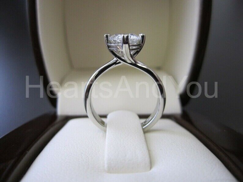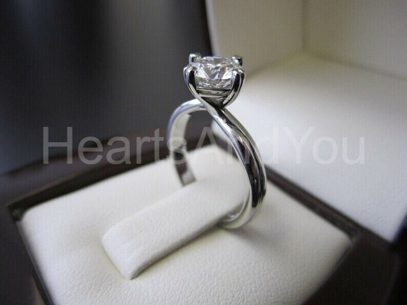 1ct Round Cut Moissanite Heart Prong Solitaire Engagement Ring 14k White Gold Plated