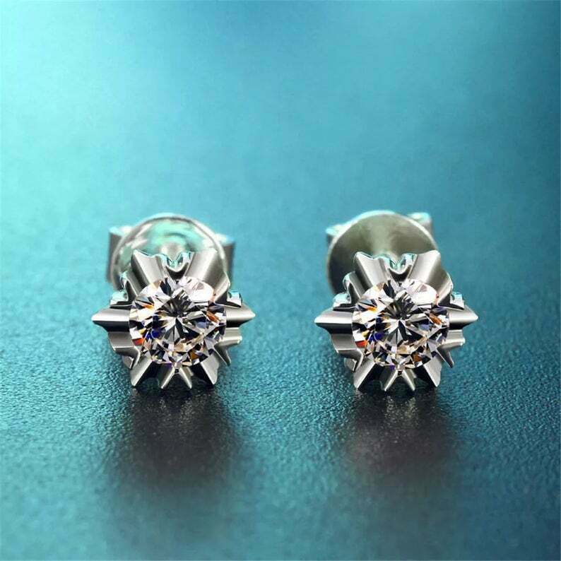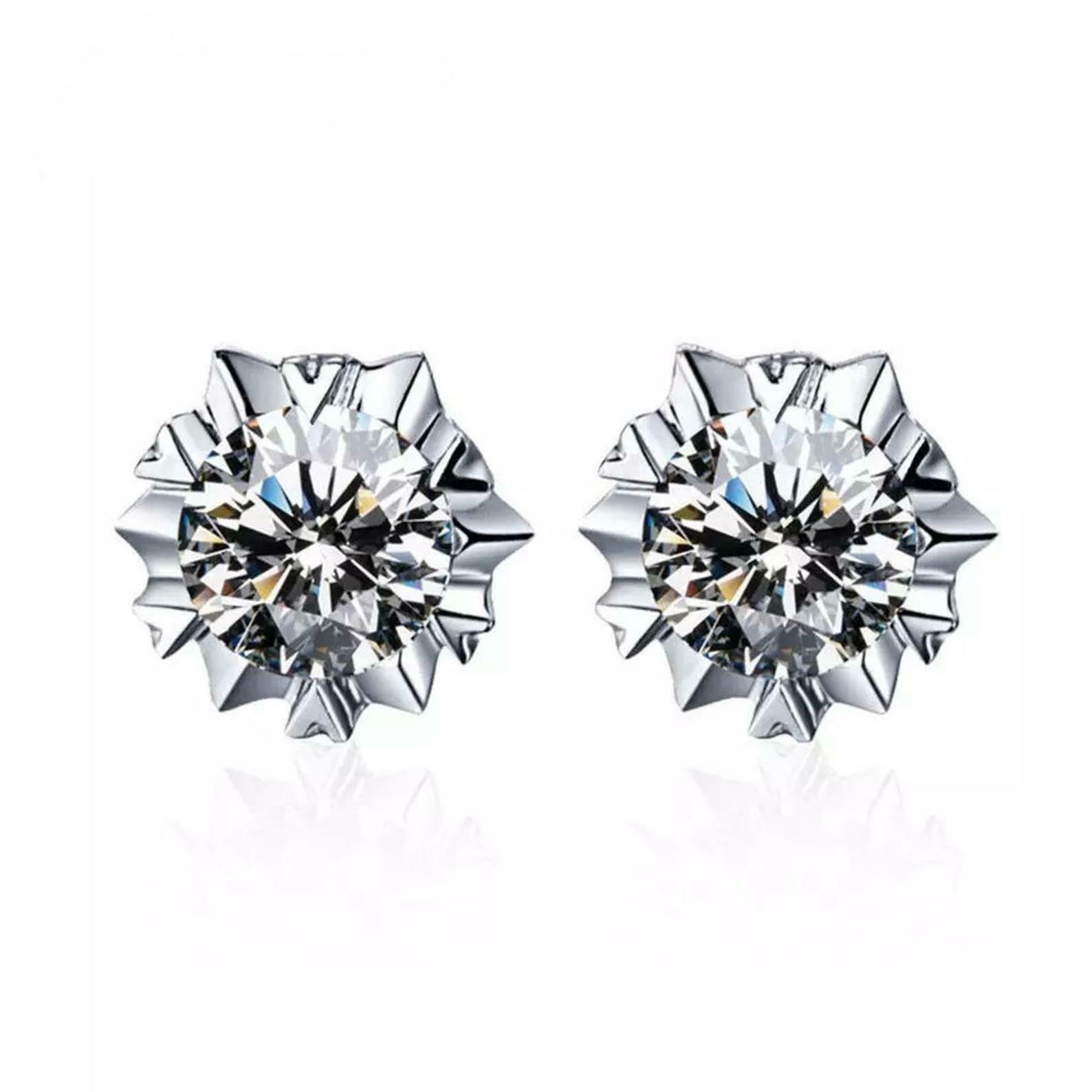 1ct Stud Earrings Round Cut Diamond Solitaire Heart Prong 14k White Gold Finish