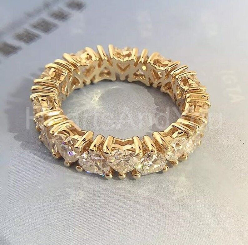 2.25ct Heart Simulated Diamond Full Eternity Wedding Band 14k Yellow Gold Plated