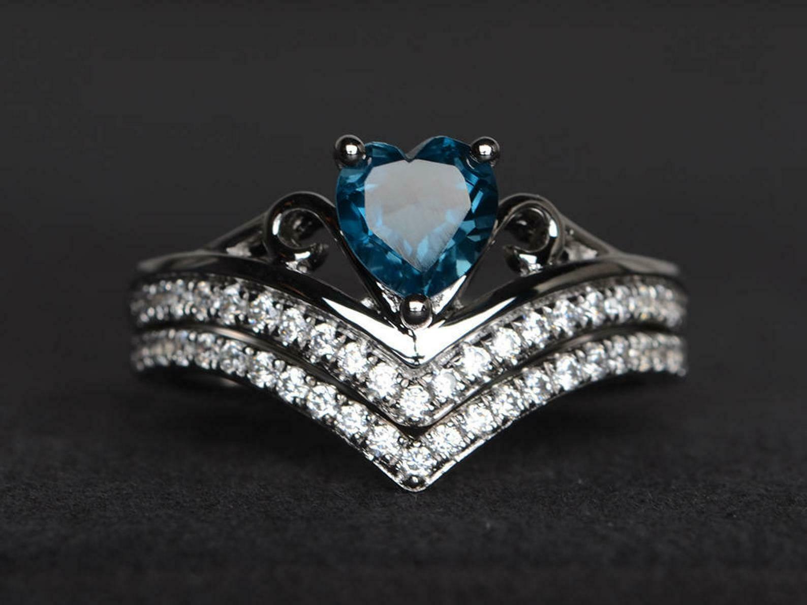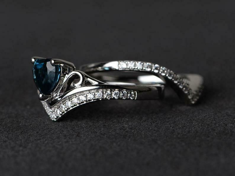 2.2ct Engagement Ring Heart Cut London Blue Topaz Bridal Set 14k White Gold Over