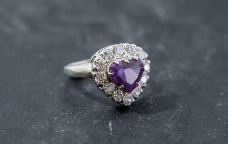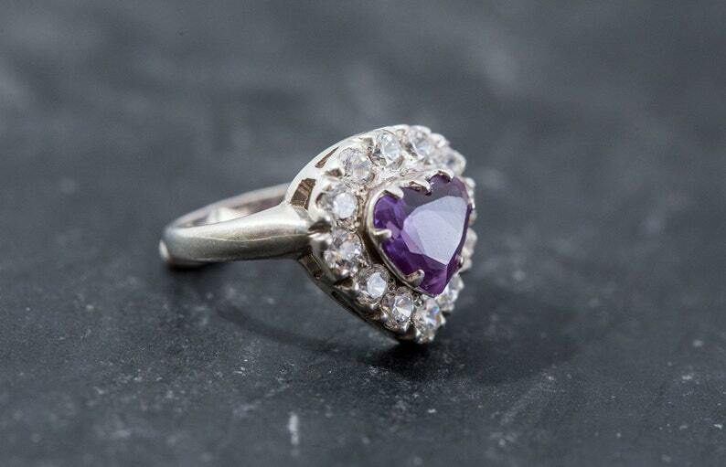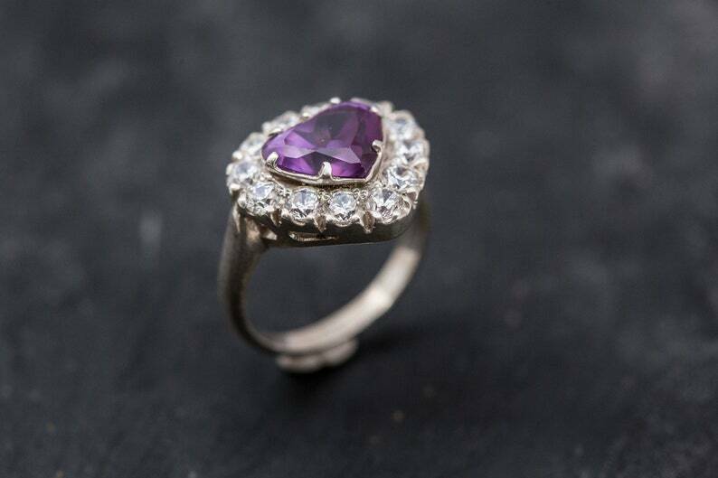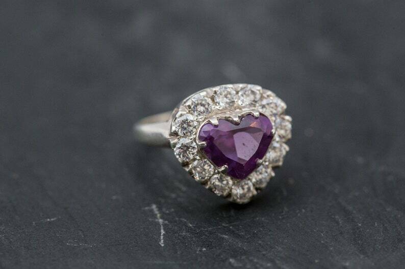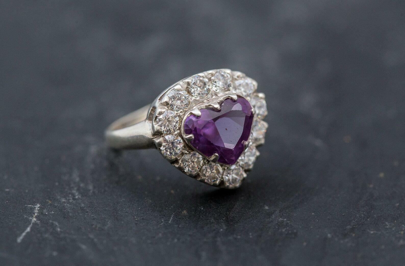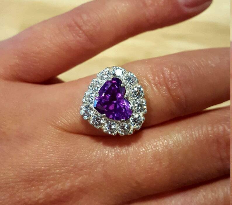 2.2ct Engagement Ring Heart Cut Purple Amethyst Diamond Halo 14k White Gold Over