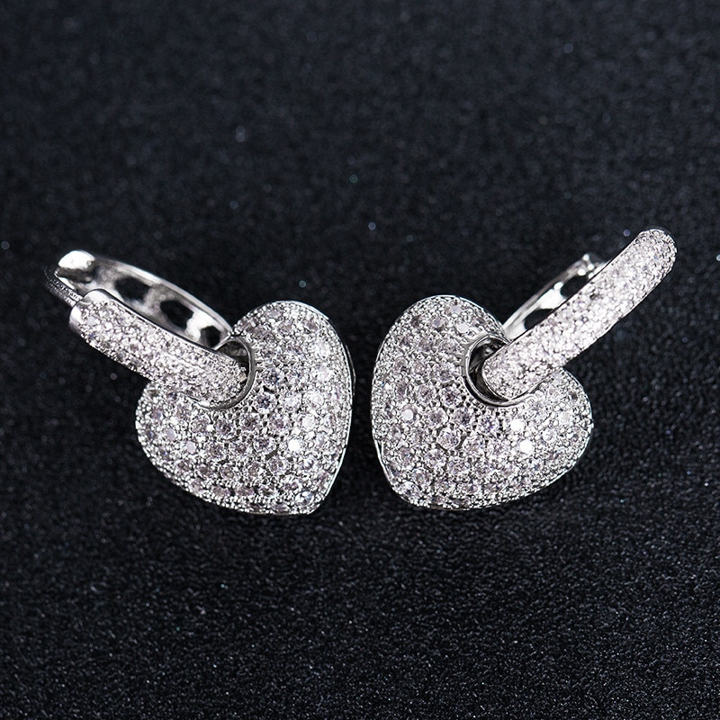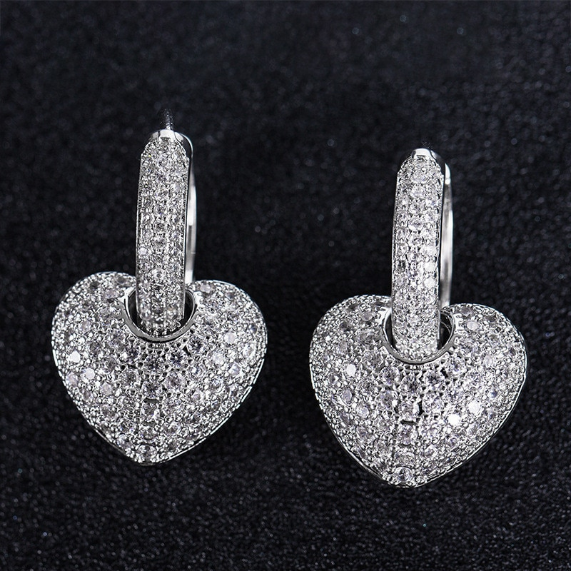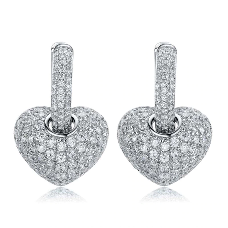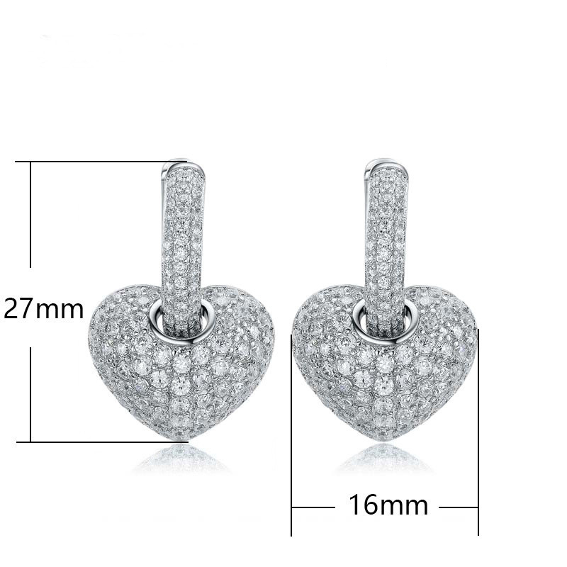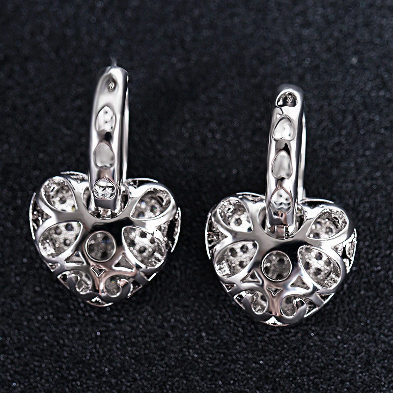 2.3ct Round Cut Diamond Heart Shape Hollow Hoop Earrings 14k White Gold Finish