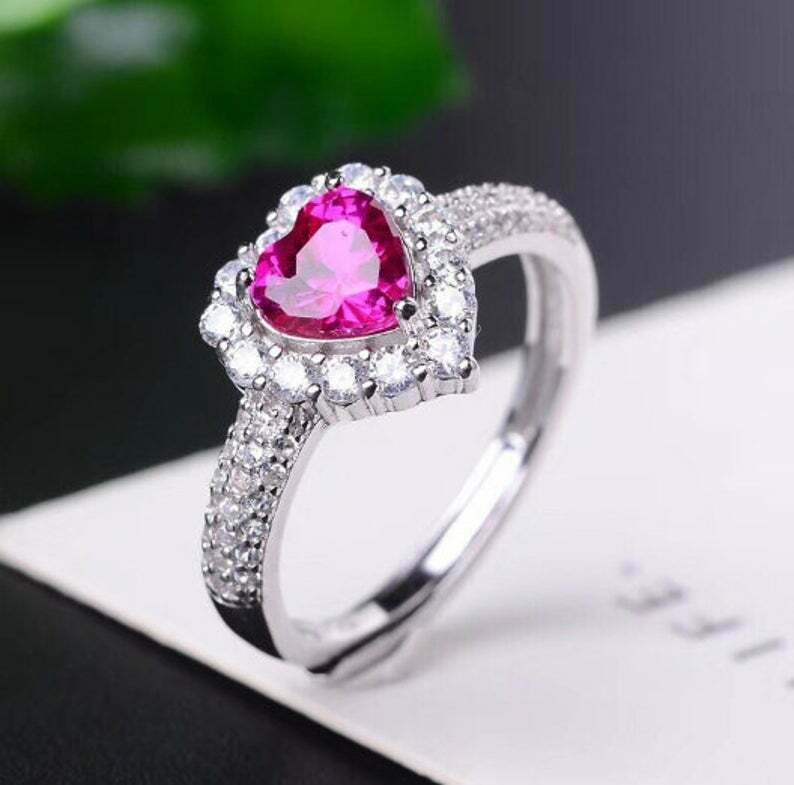 2.45ct Heart Cut Pink Sapphire Engagement Ring Cluster Accent Halo 14k White Gold Over