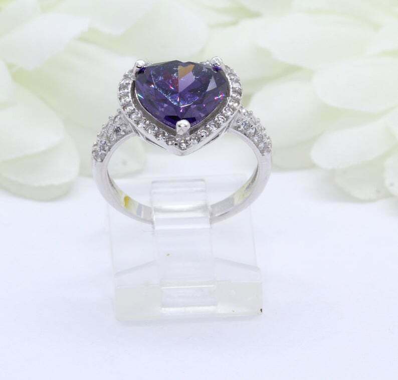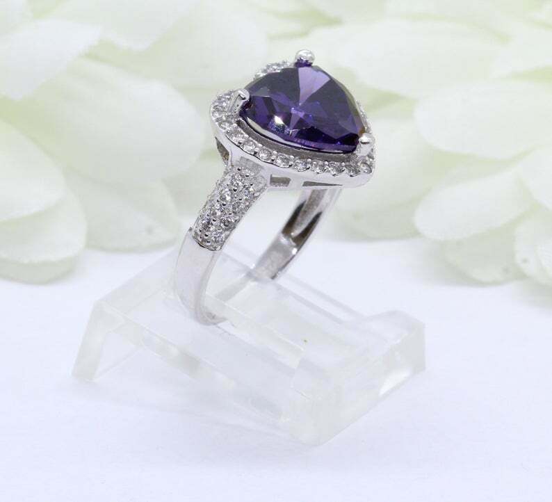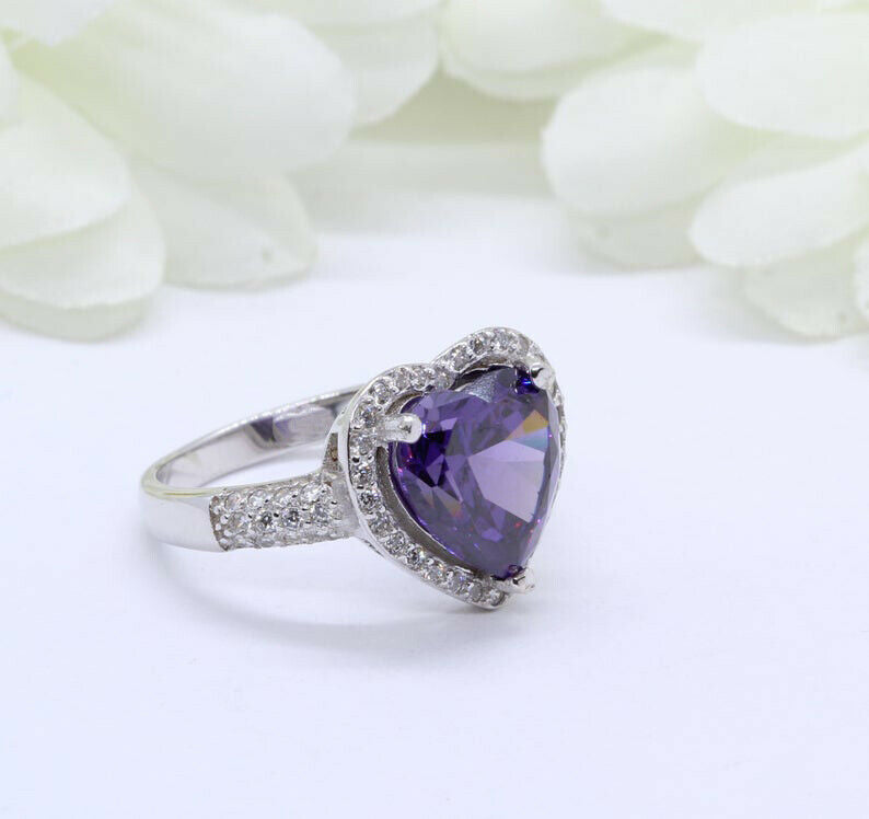 2.4ct Heart Cut Purple Amethyst Engagement Ring Cluster Accent Halo 14k White Gold Over