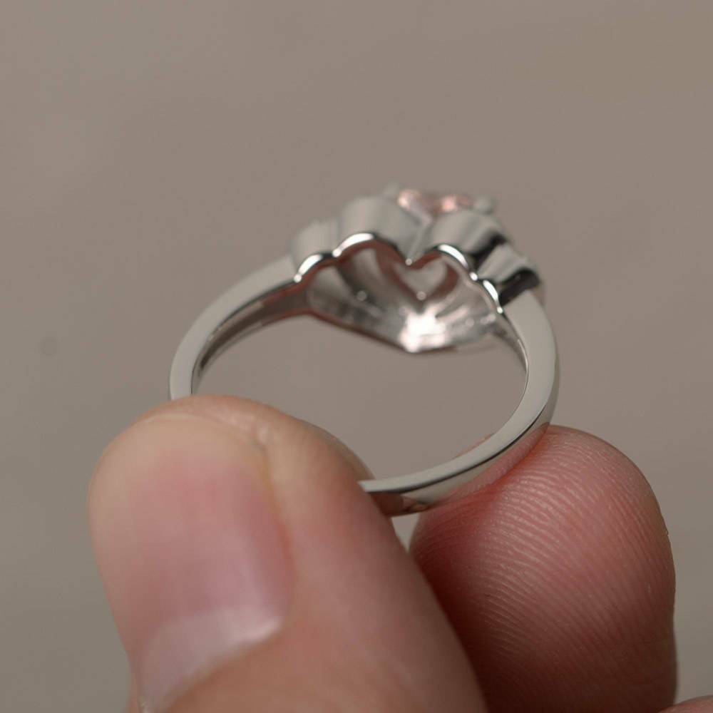 2.5ct Heart Cut Peach Morganite Double Heart Engagement Ring 14k White Gold Over