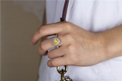 2.5ct Heart Cut Yellow Citrine Engagement Ring 14k White Gold Finish Double Halo