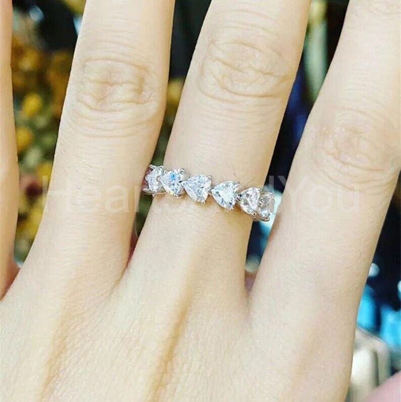 2.5ct Heart Simulated Diamond Full Eternity Wedding Band 14k White Gold Plated