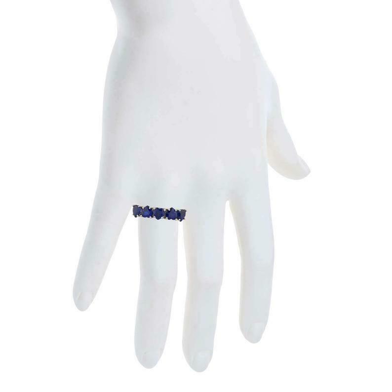 2.6ct Heart Cut Blue Sapphire Five Stone Half Eternity Band 14k White Gold Over