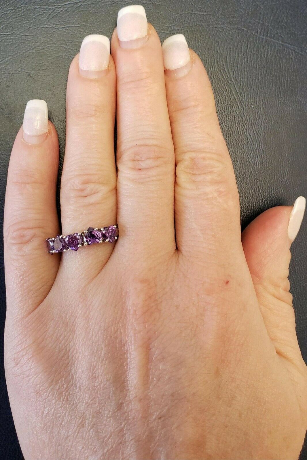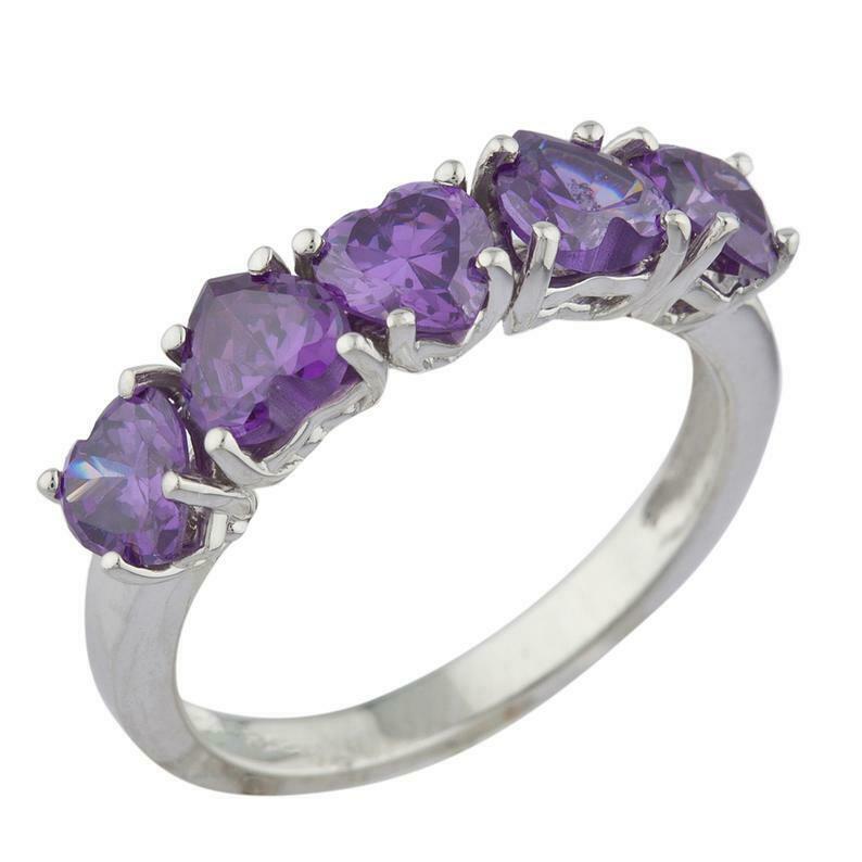 2.6ct Heart Cut Purple Amethyst Five Stone Half Eternity Band 14k WhiteGold Over
