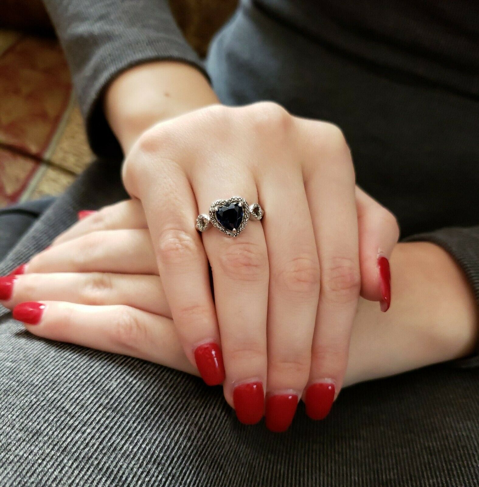 2ct Engagement Ring Heart Cut Blue Sapphire Halo Solitaire 14k White Gold Finish