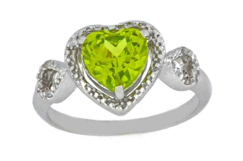 2ct Engagement Ring Heart Cut Green Peridot Halo Solitaire 14k White Gold Finish
