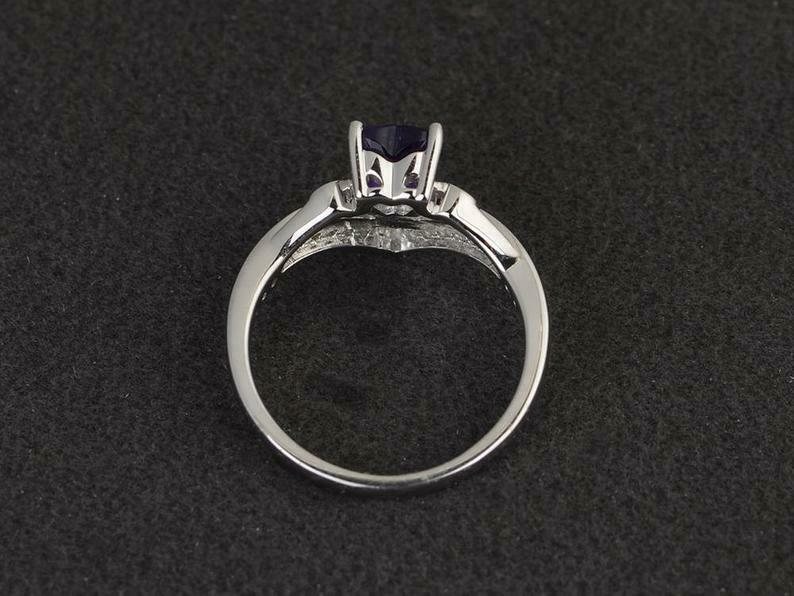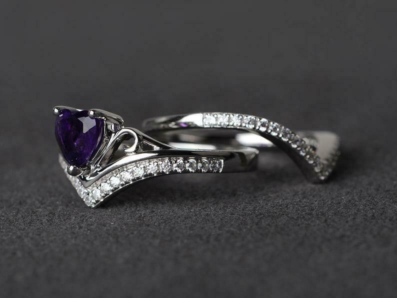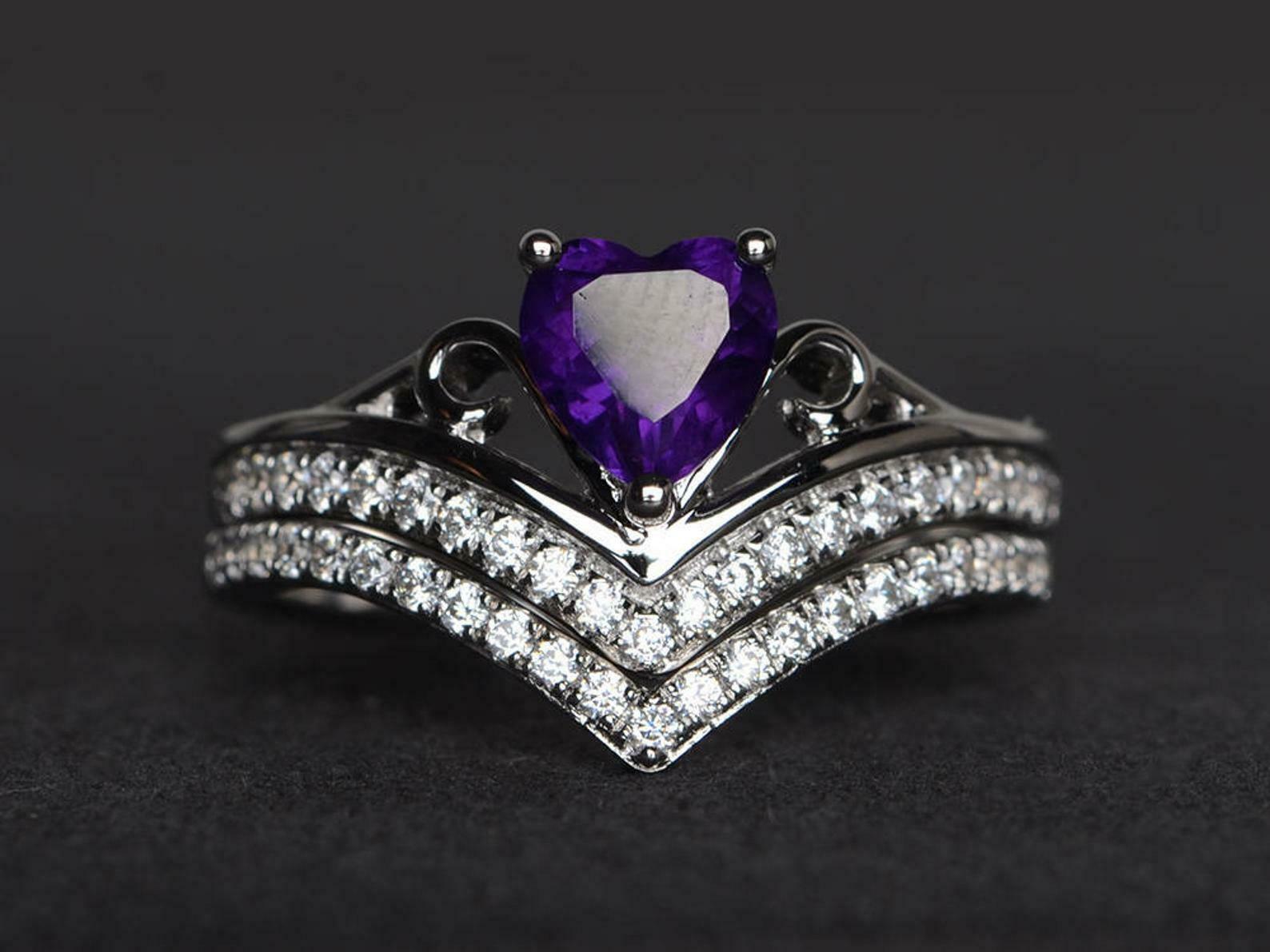 2ct Engagement Ring Heart Cut Purple Amethyst Bridal Set 14k White Gold Finish