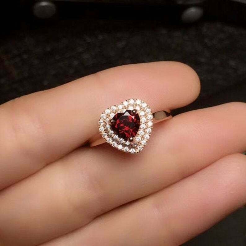 2ct Engagement Ring Heart Cut Red Garnet Dual Halo Solitaire 14k Yellow Gold Over