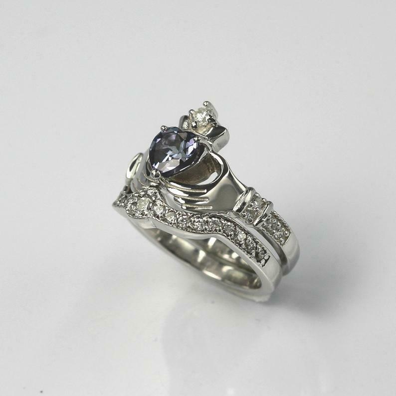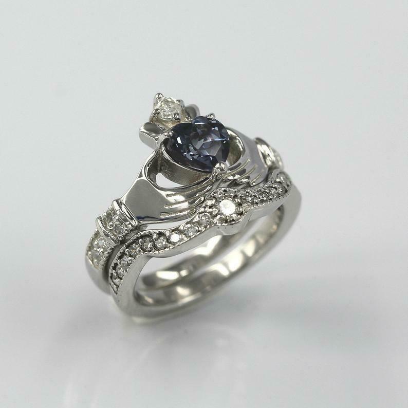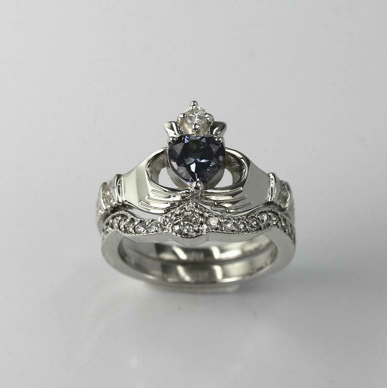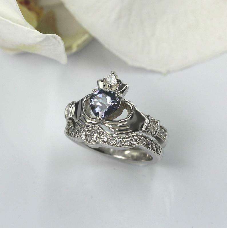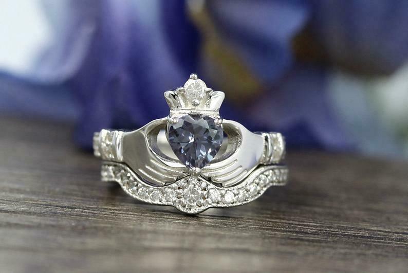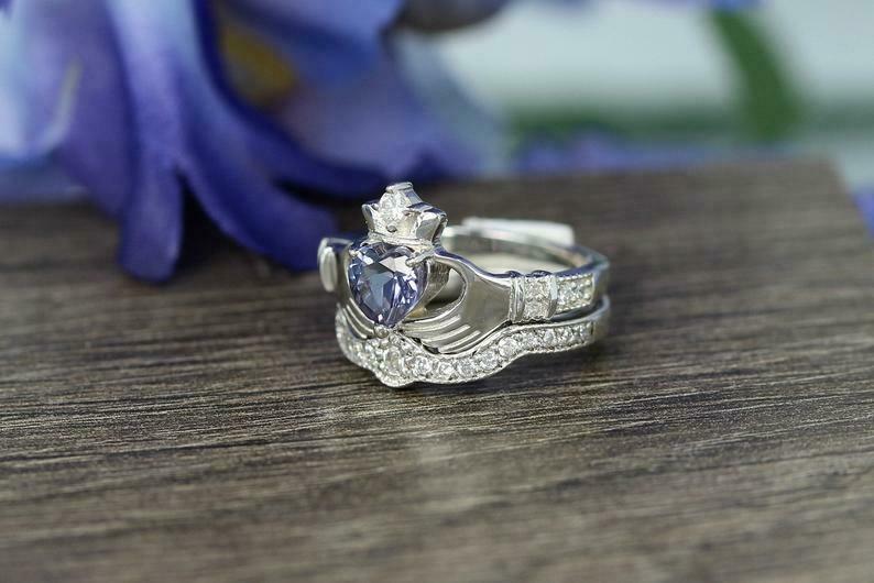 2ct Heart Blue Tanzanite Engagement Ring Claddagh Bridal Set 14k White Gold Over