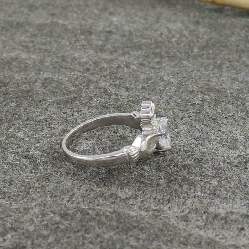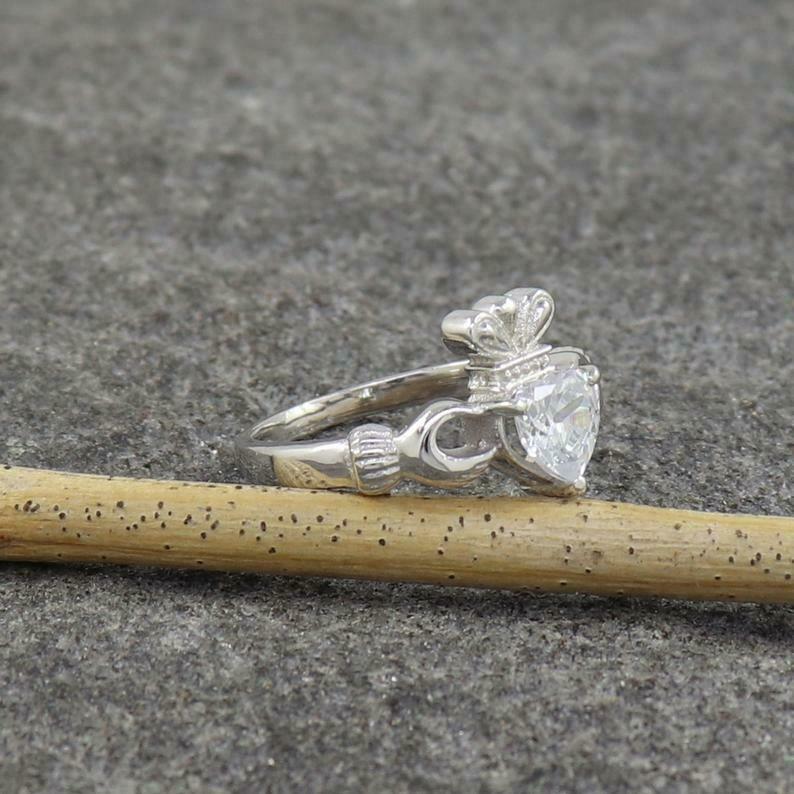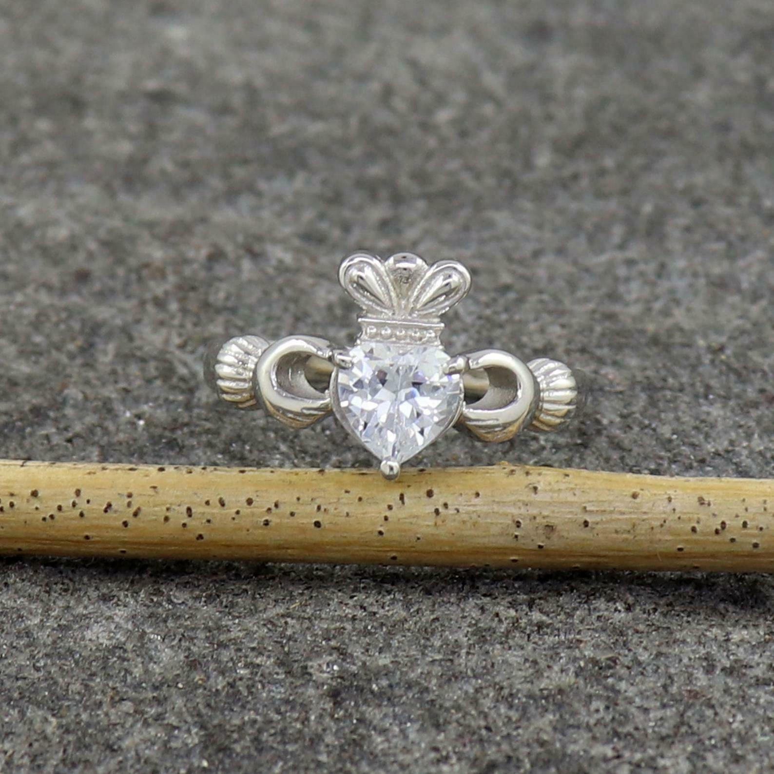 2ct Heart Cut Diamond Claddagh Solitaire Engagement Ring 14K White Gold Finish
