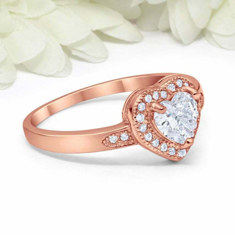 2ct Heart Cut Diamond Engagement Ring Milgrain Halo Solitaire 18k Rose Gold Over