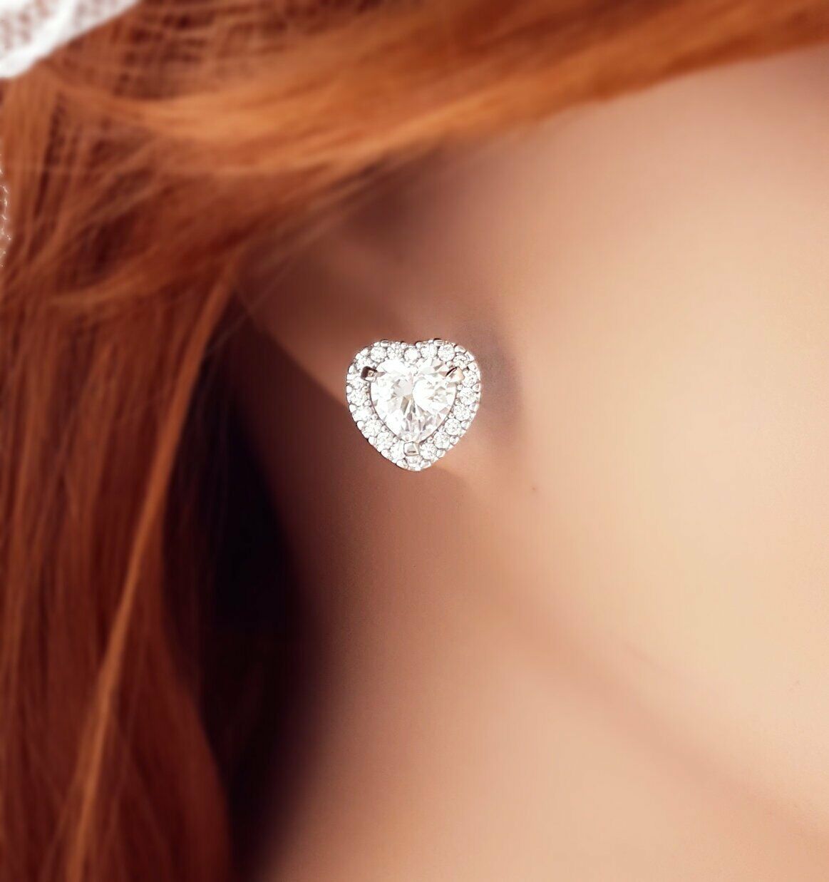 2ct Heart Cut Diamond Halo Love Valentine Stud Earrings 14k White Gold Finish