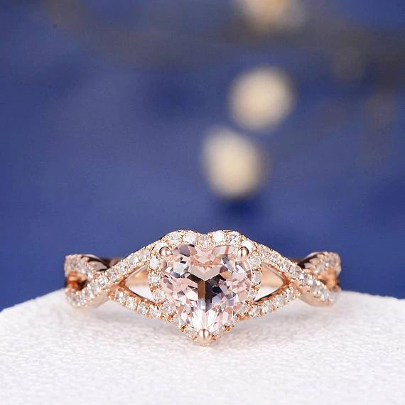 2ct Heart Cut Morganite Engagement Ring Split Shank Infinity 14k Rose Gold Over