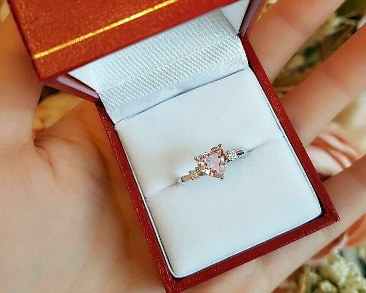 2ct Heart Cut Peach Morganite Engagement Ring 14k White Gold Finish Trilogy