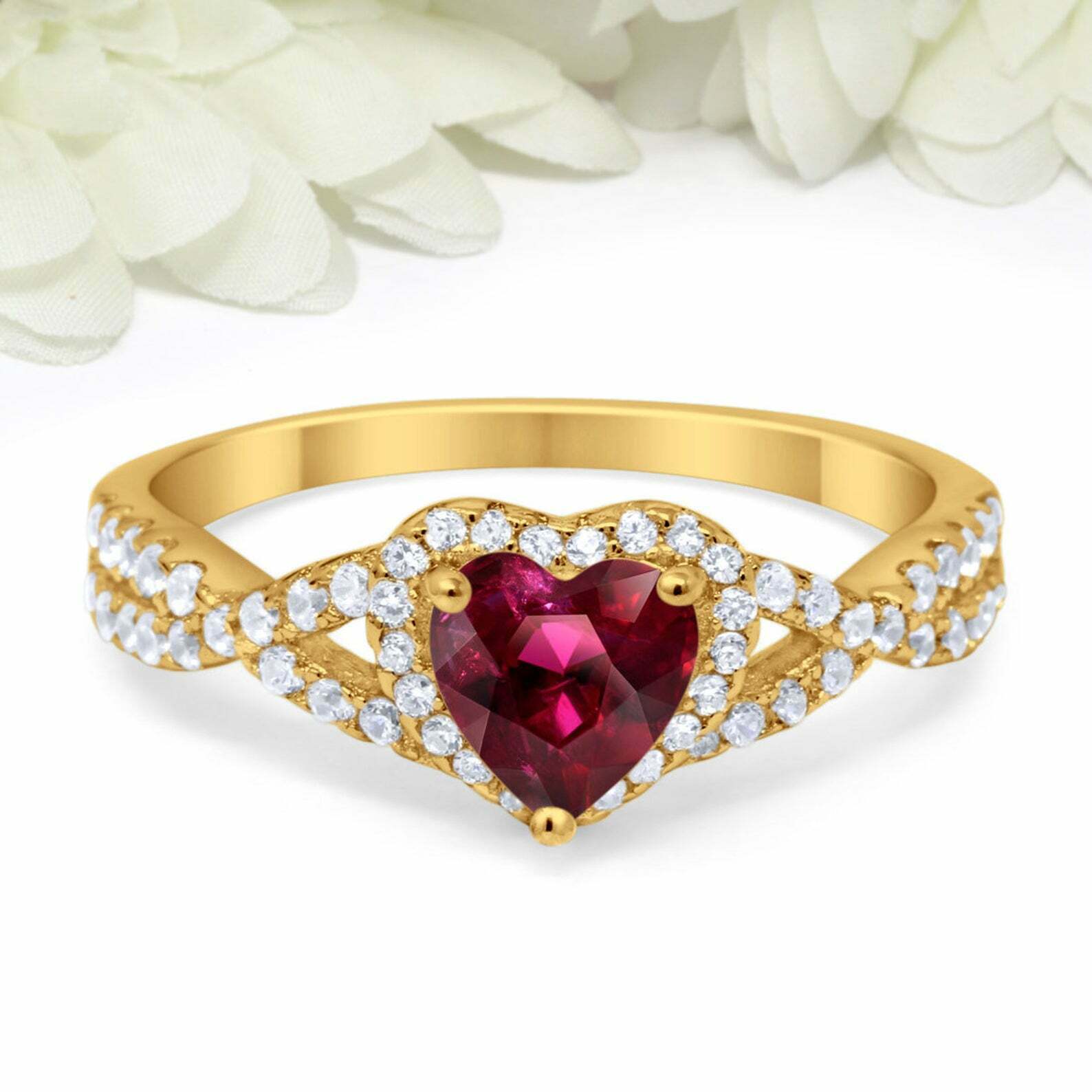 2ct Heart Cut Pink Ruby Engagement Ring Split Shank Halo 14k Yellow Gold Finish