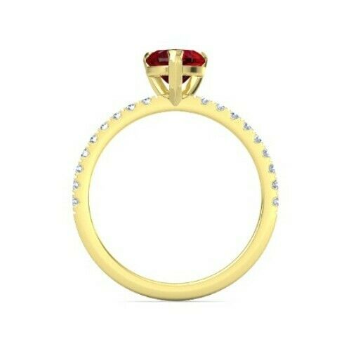 2Ct Heart Cut Red Garnet Diamond Accent Engagement Ring 14K Yellow Gold Finish