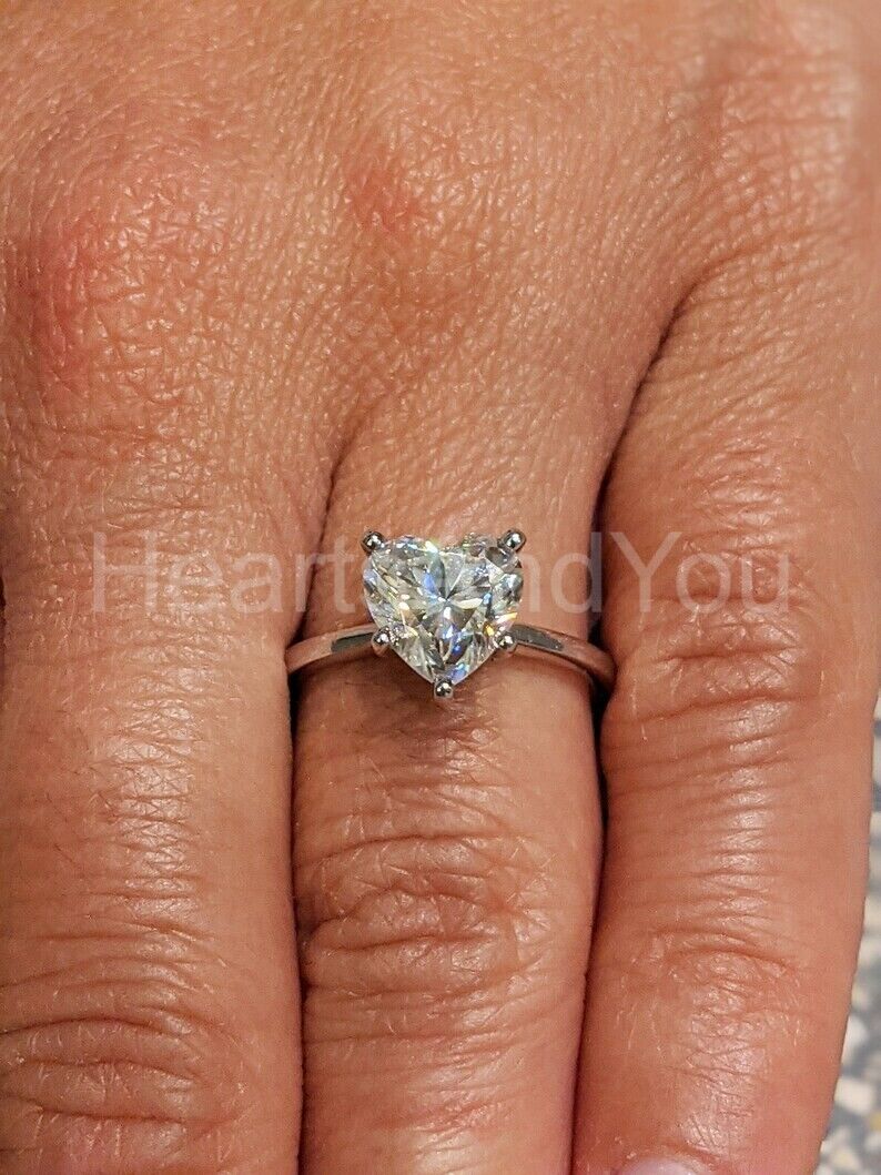 2ct Heart Cut Simulated Diamond Solitaire Engagement Ring 14k White Gold Plated