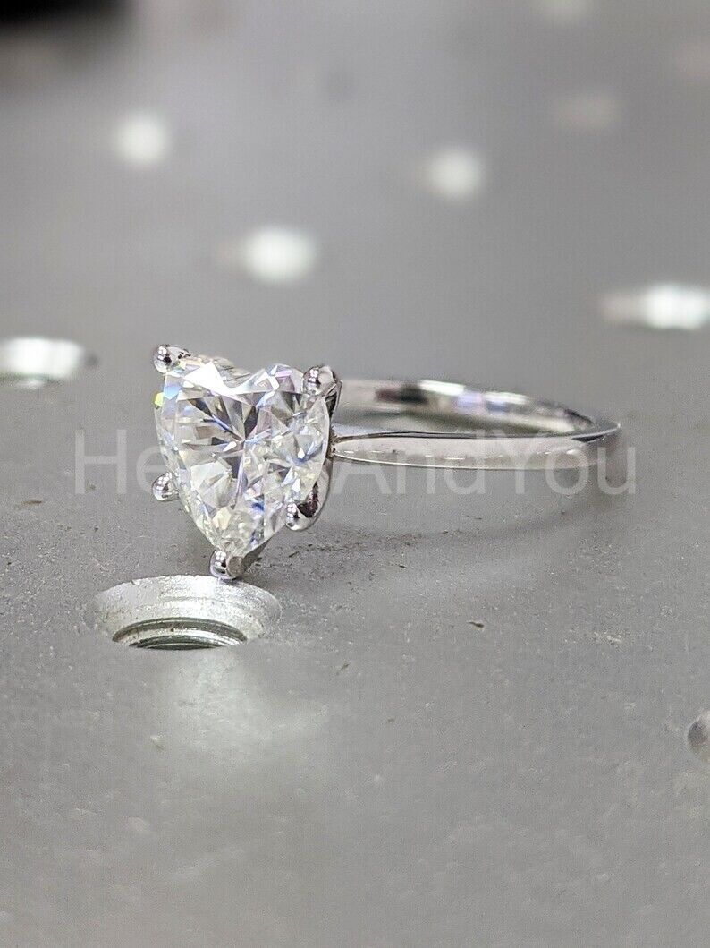 2ct Heart Cut Simulated Diamond Solitaire Engagement Ring 14k White Gold Plated