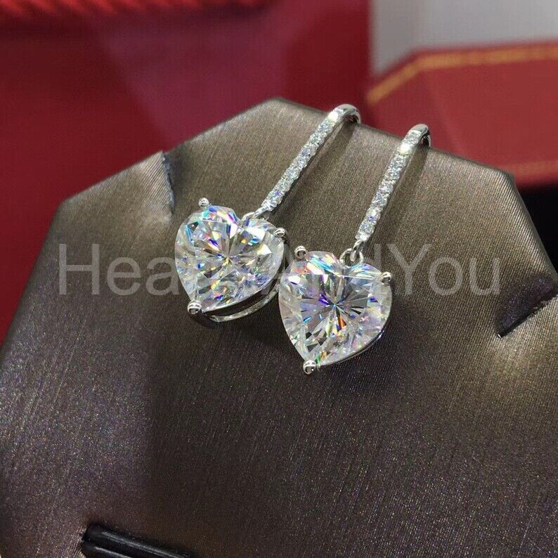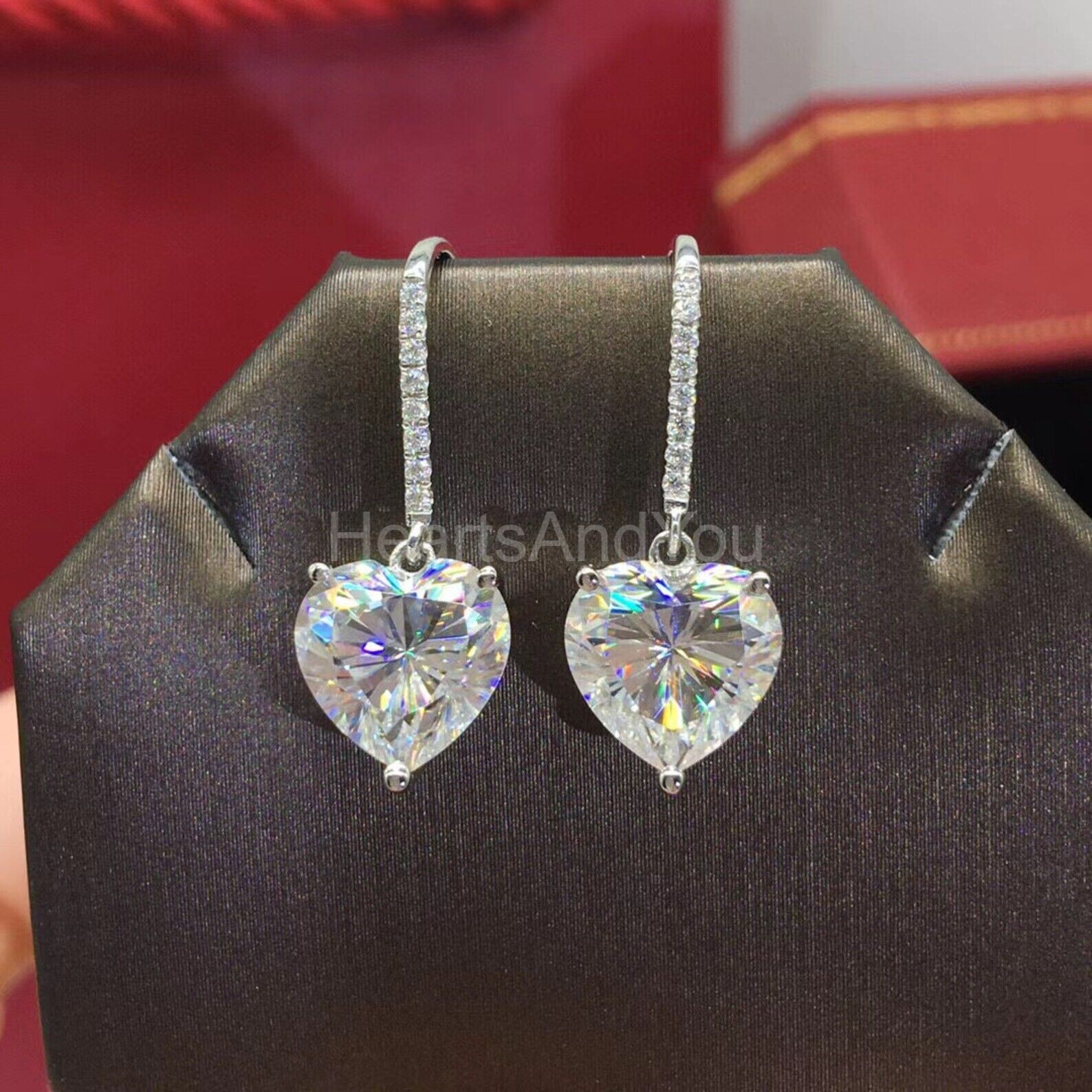 2ct Heart Cut Simulated Diamond Stylish Dangle Earrings 14k White Gold Plated