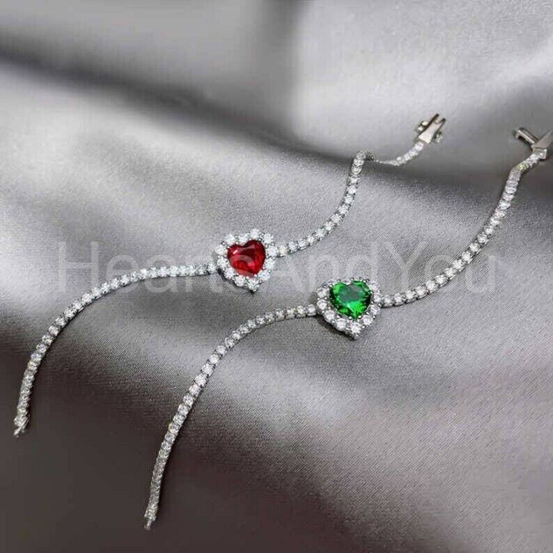 2ct Heart Cut Simulated Pink Ruby Halo Heart Shape Bracelet 14k White Gold Plated