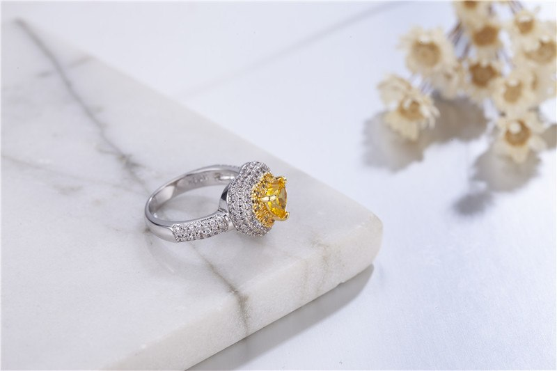 2ct Heart Cut Yellow Citrine Engagement Ring 14k White Gold Finish Double Halo