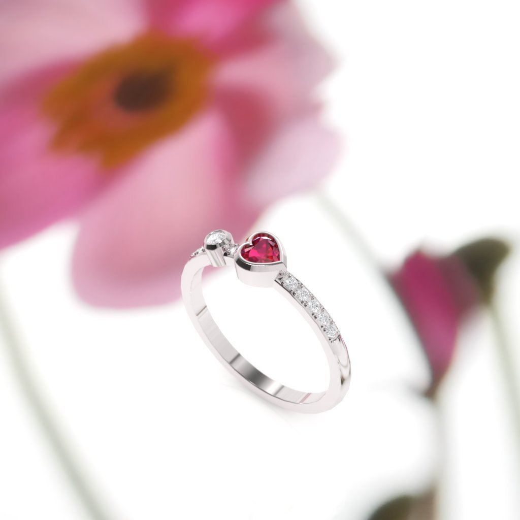 2ct Heart Red Garnet Engagement Ring 14k White Gold Finish Heart Shape Eternity