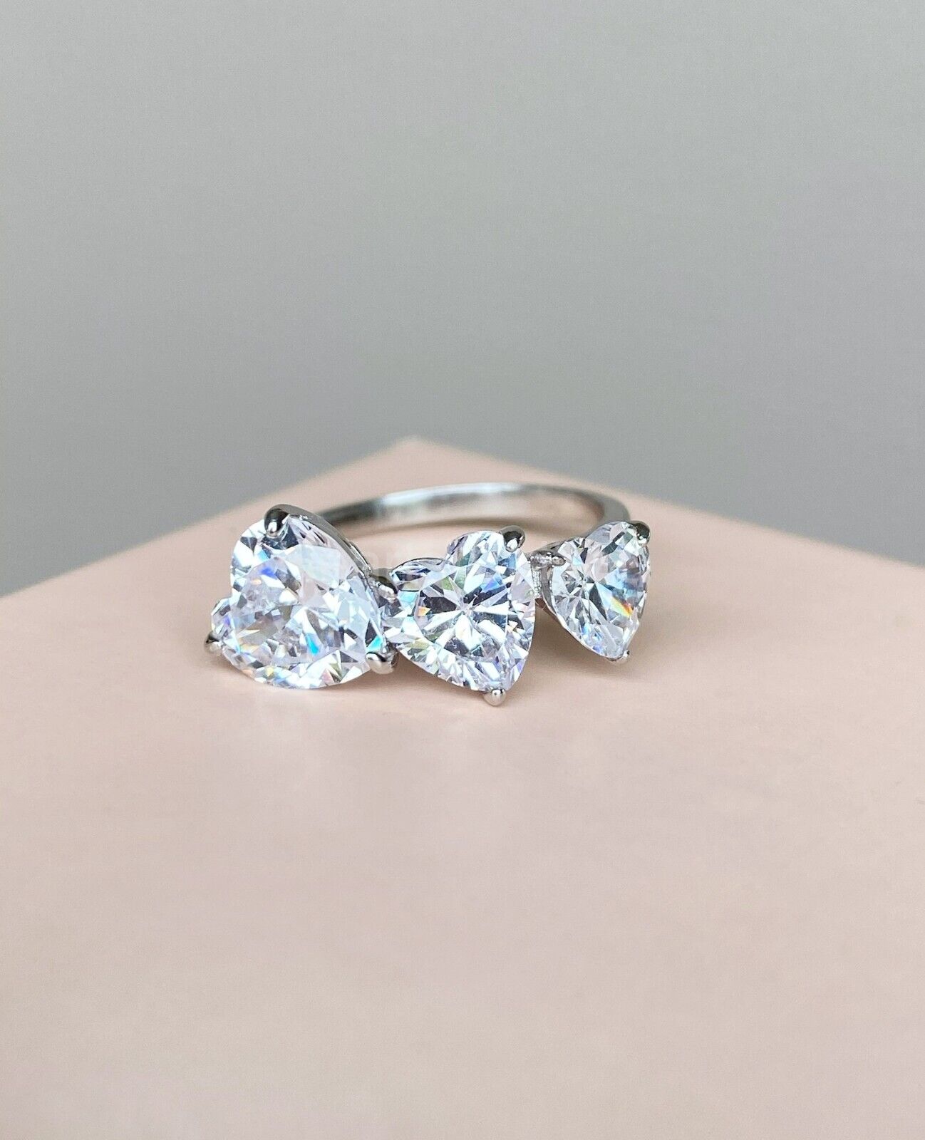 2ct Heart Simulated Diamond Three Stone Engagement Ring 14k White Gold Plated