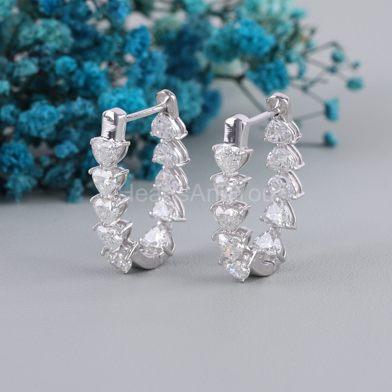 2ct Heart Simulated Diamond Valentines Cocktail Hoop Earring 14k White Gold Plated