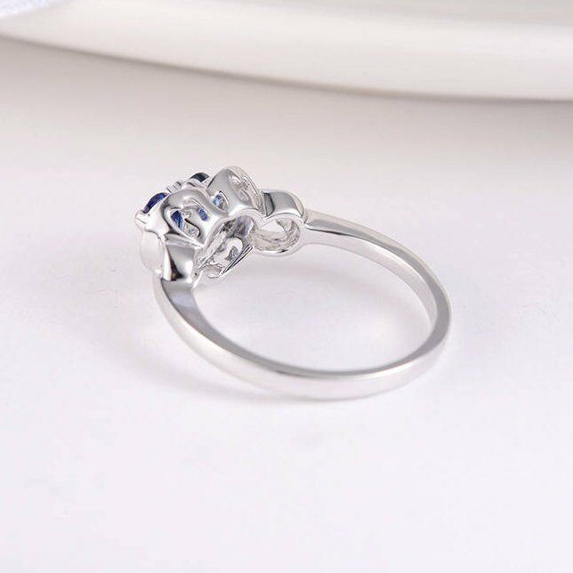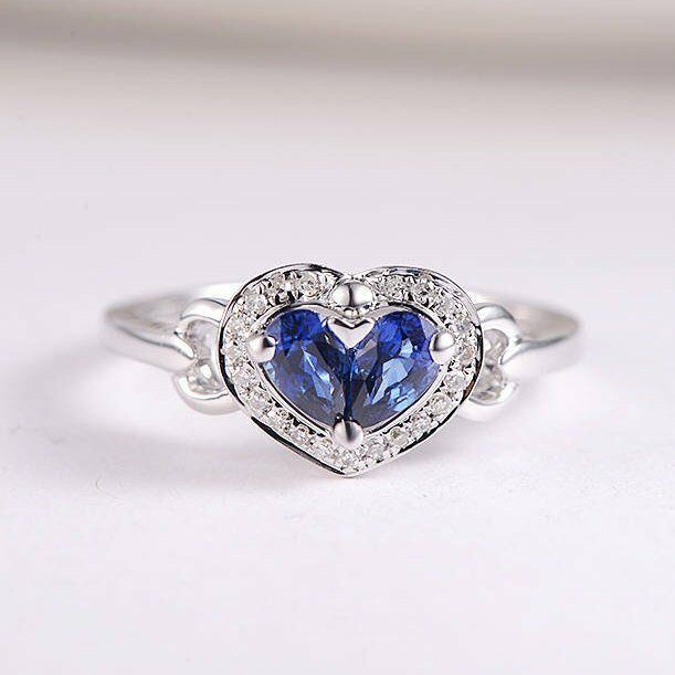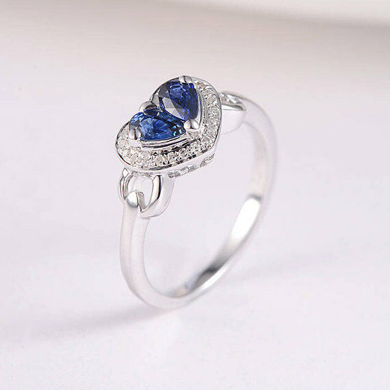 2ct Pear Cut Blue Sapphire Engagement Ring 14k White Gold Finish Halo Heart Love
