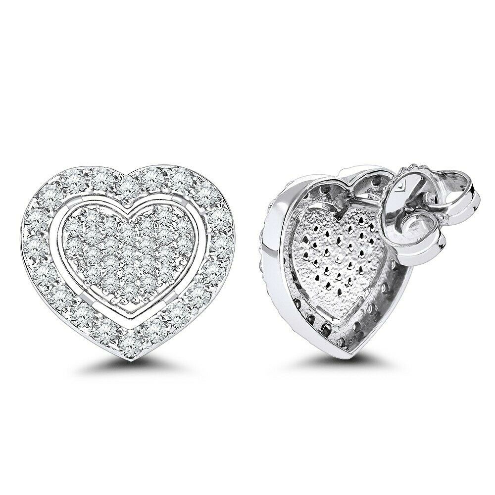 2Ct Round Cut Diamond Heart Cluster Halo Women Stud Earrings 14K White Gold Over