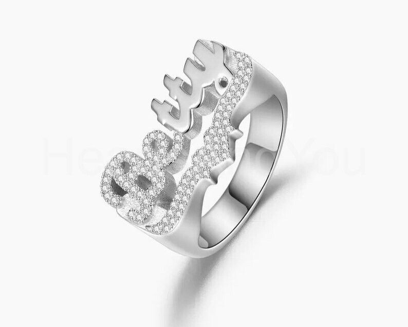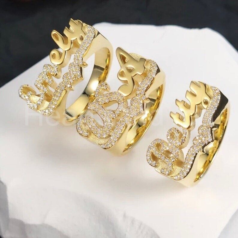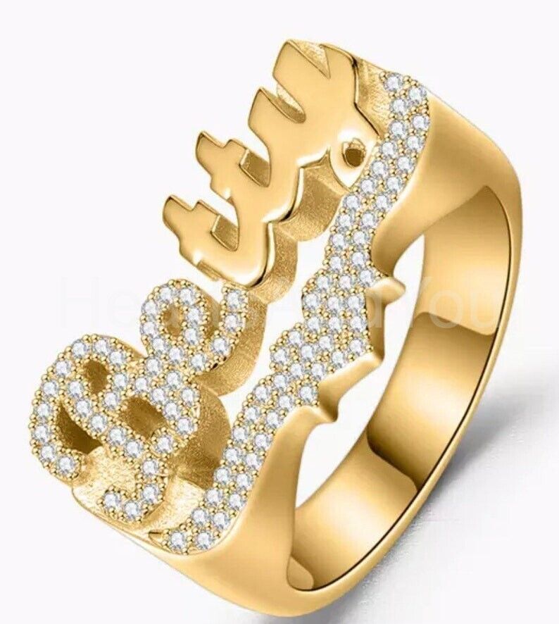 2ct Round Cut Moissanite Custom Name Heart Cluster Ring 14k Yellow Gold Plated