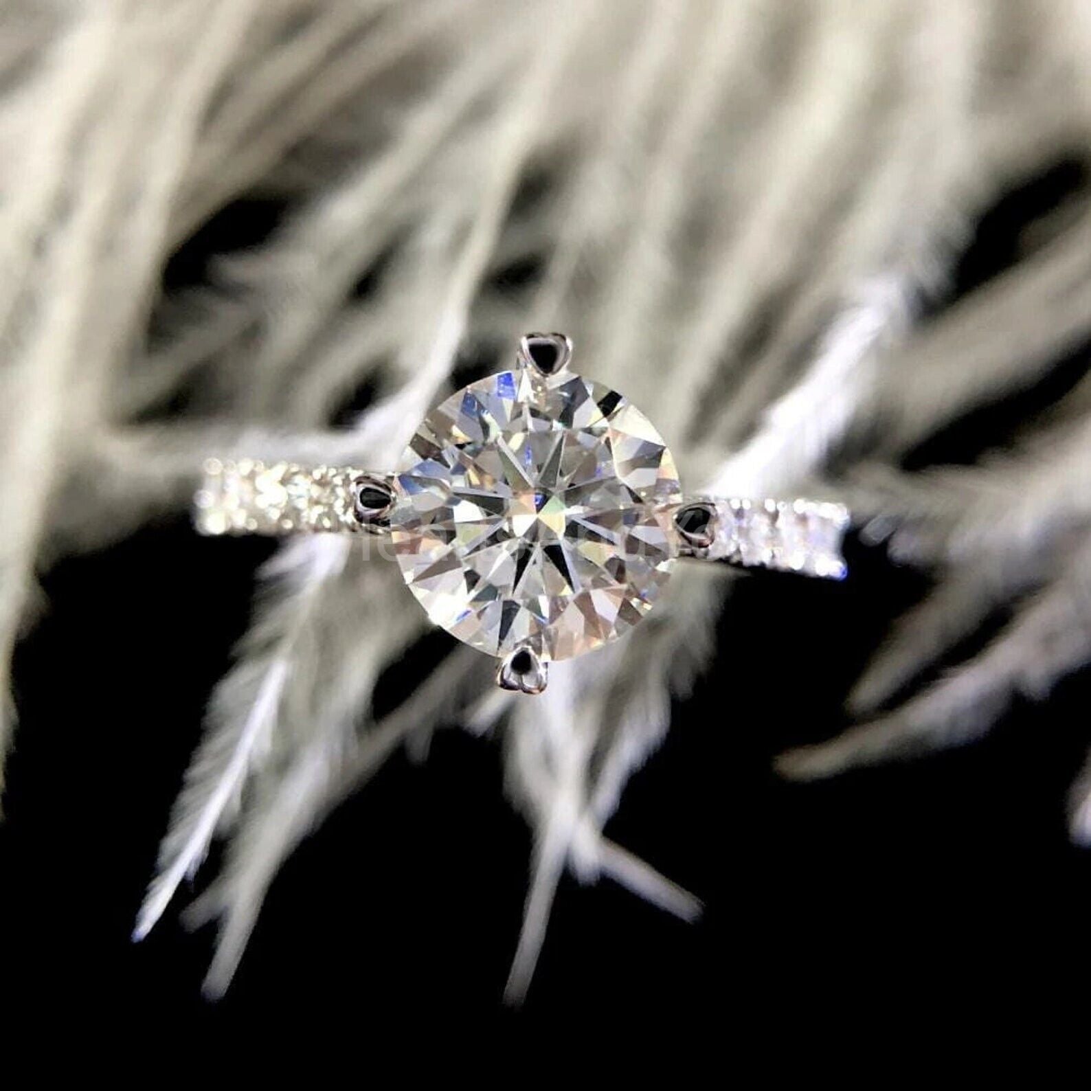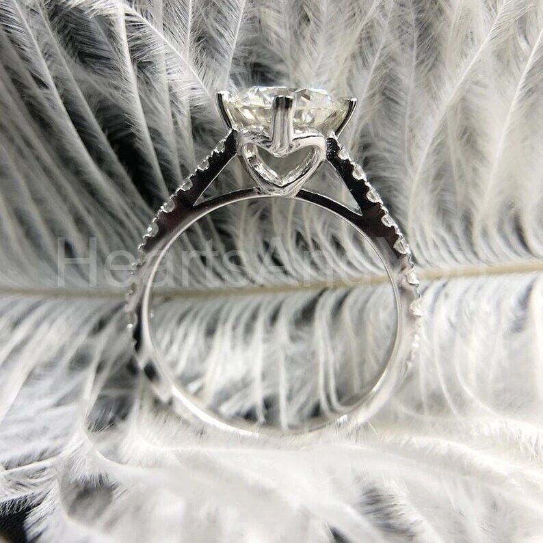 2ct Round Moissanite Heart Prong Accented Engagement Ring 14K White Gold Plated