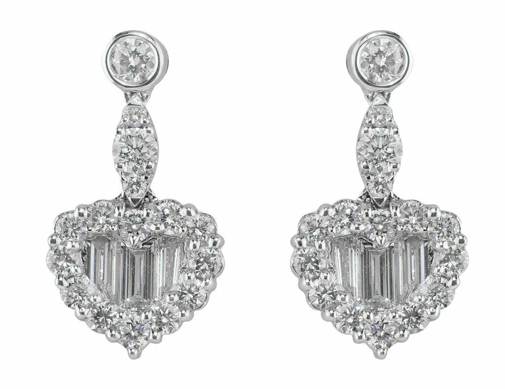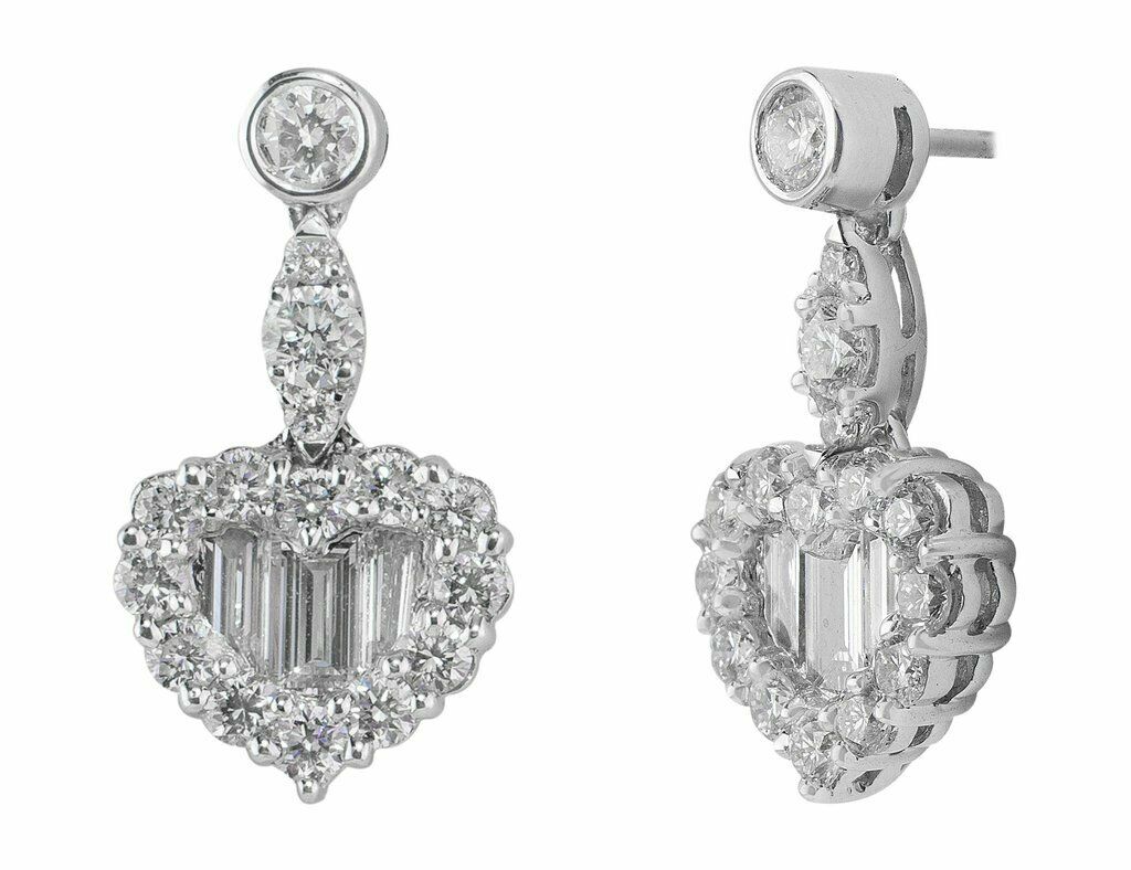 3Ct Emerald Cut Diamond Heart Halo Women Drop Earrings 14K White Gold Finish
