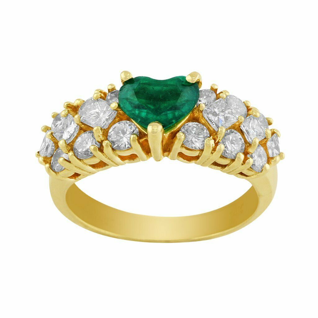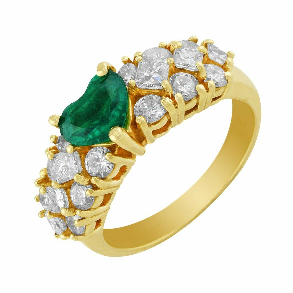 3Ct Heart Cut Green Emerald 3 Row Diamond Engagement Ring 14K Yellow Gold Finish