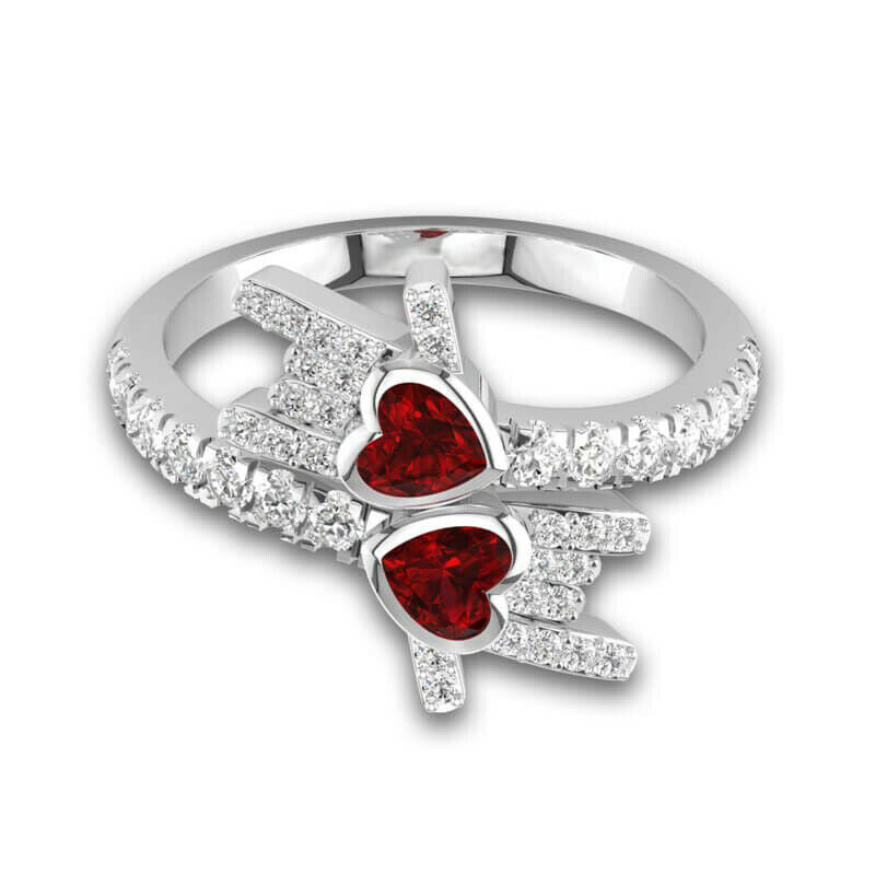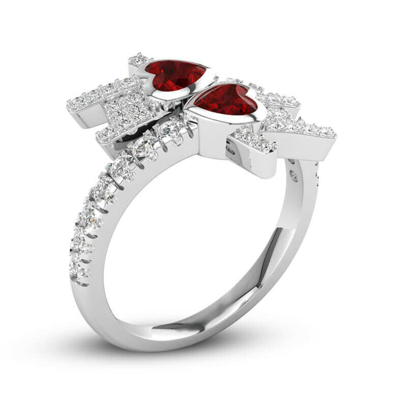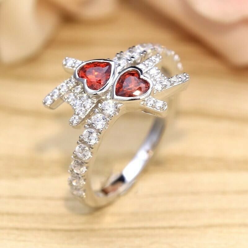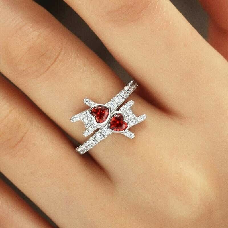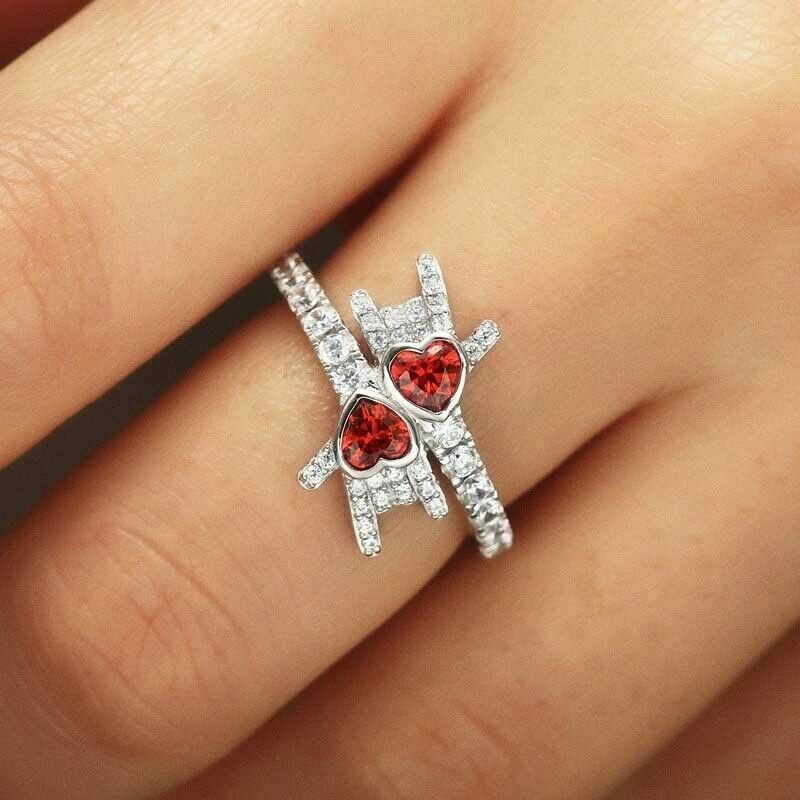 3Ct Heart Cut Red Garnet Diamond Stylish Stackable Ring 14K White Gold Finish