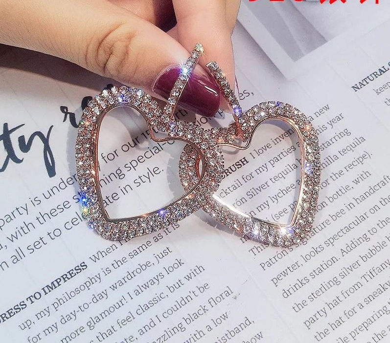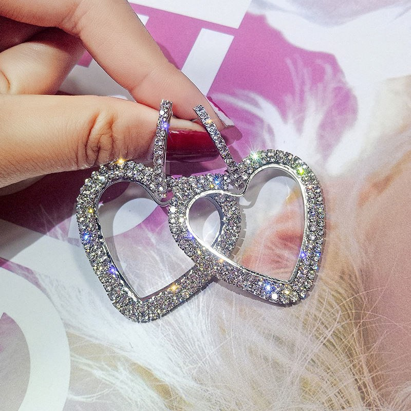 3ct Round Cut Diamond Double Halo Heart Shape Drop Earrings 14k WhiteGold Finish