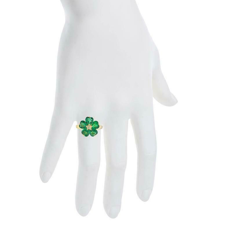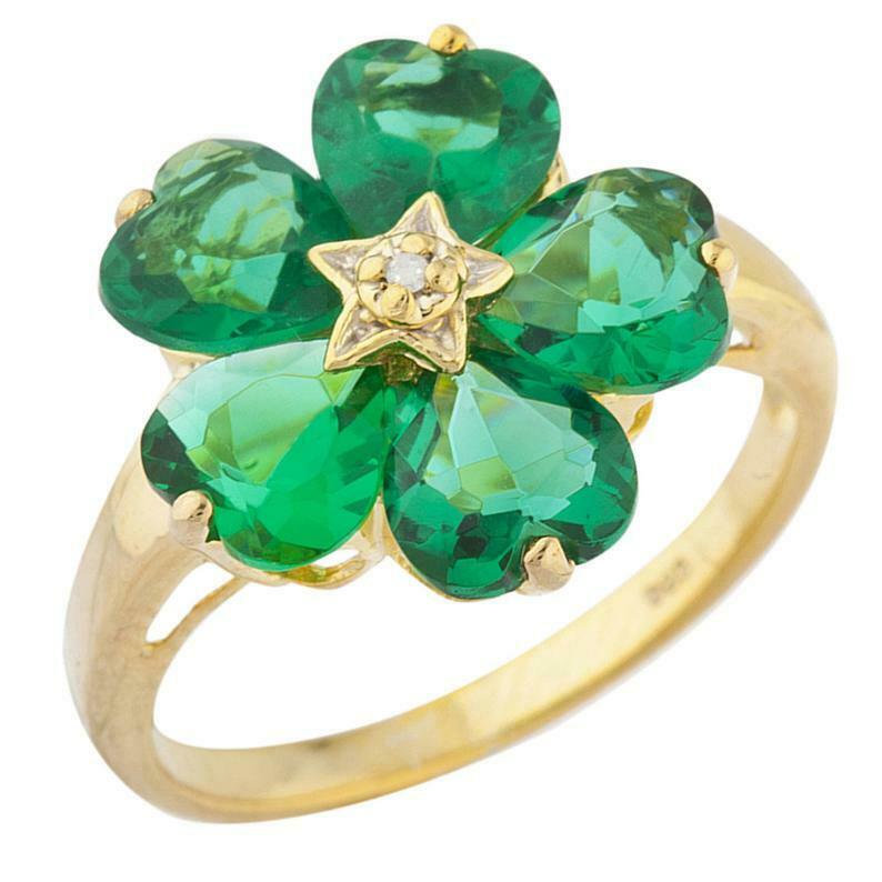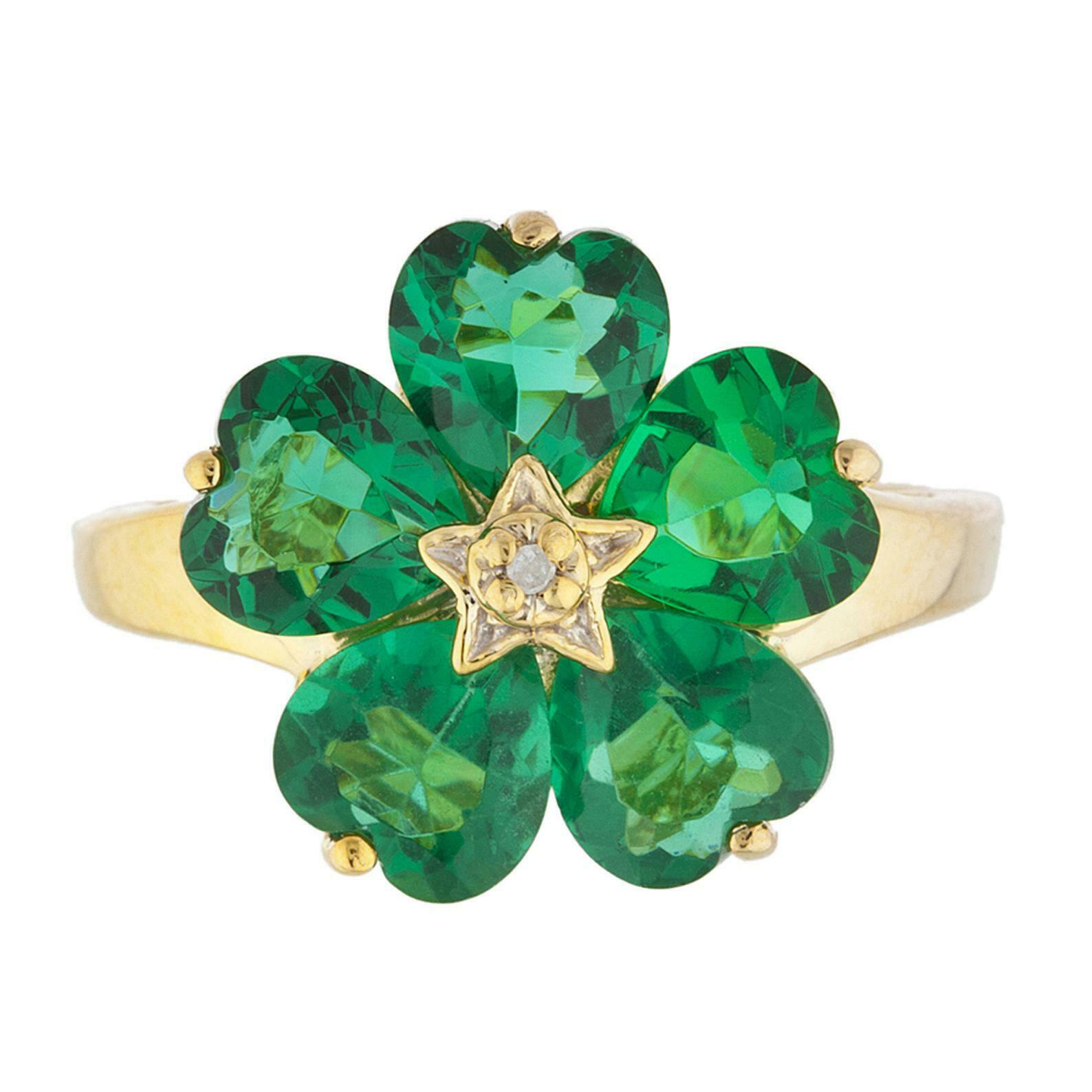 5ct Engagement Ring Heart Cut Green Emerald Floral Women 14k Yellow Gold Finish