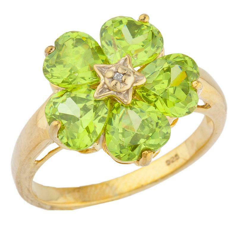 5ct Engagement Ring Heart Cut Green Peridot Floral Women 14k Yellow Gold Finish