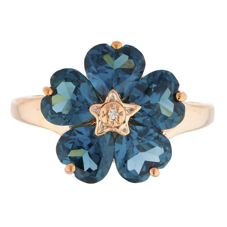 5ct Engagement Ring Heart Cut London Blue Topaz Floral 14k Rose Gold Finish