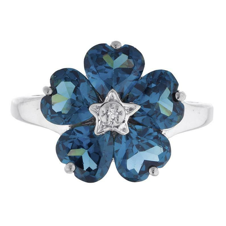 5ct Engagement Ring Heart Cut London Blue Topaz Floral 14k White Gold Finish
